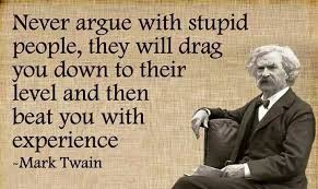 Never argue with stupid people they will drag you down to their level and then beat you with experience Mark Twain.