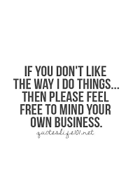 Mind Your Own Business. We are able to keep the prices down to a. Keep it to yourself please. If I care to listen to every criticism let alone act on them then this shop may as well be closed for all other businesses.